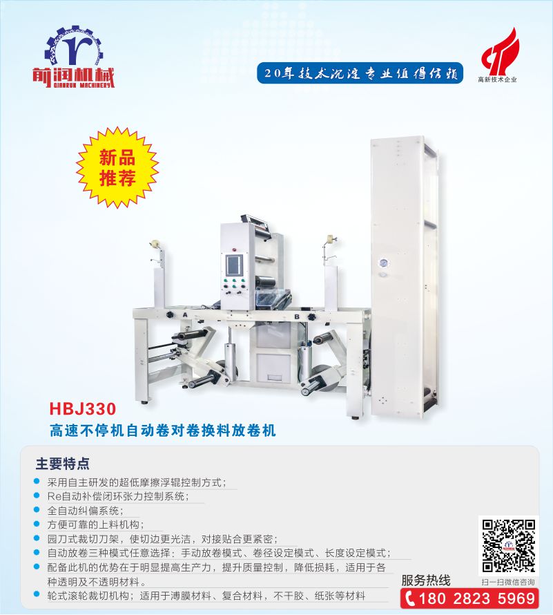 HBJ330 高速不停機自動卷對卷換料放卷機